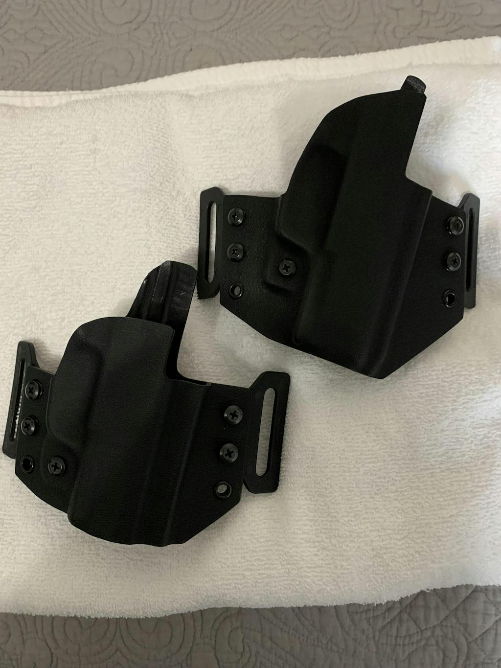 To be as sleek as possible, each holster is molded to your specific gun. Excess material is removed from the bottom of each holster to aid in concealment. Weighing in at only a few ounces, our holsters add very little overall weight to your setup.