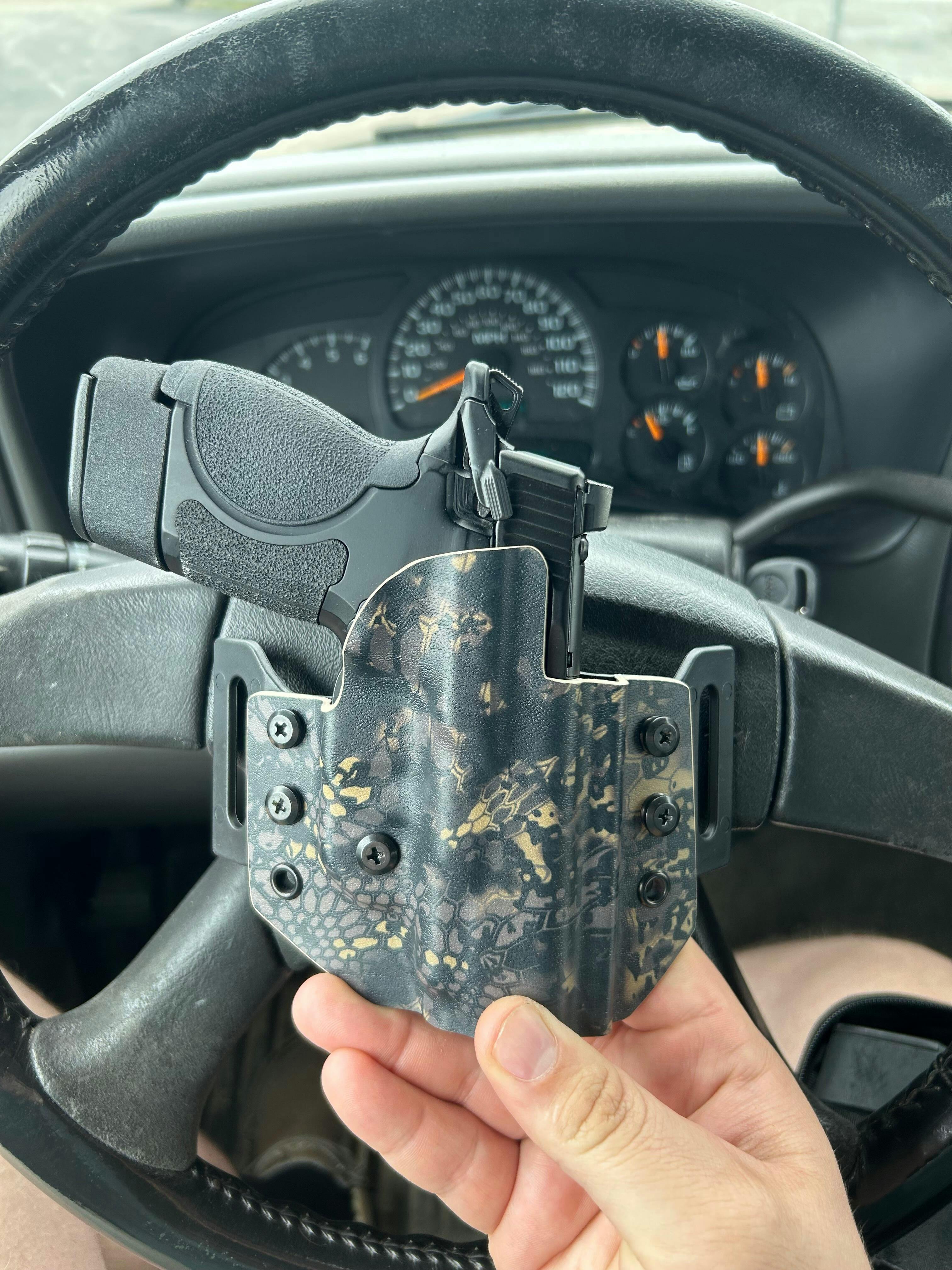 Formed on our distinctive curve, utilizing a duel clip configuration, these holsters are a comfortable alternative to carrying your handgun all day.
