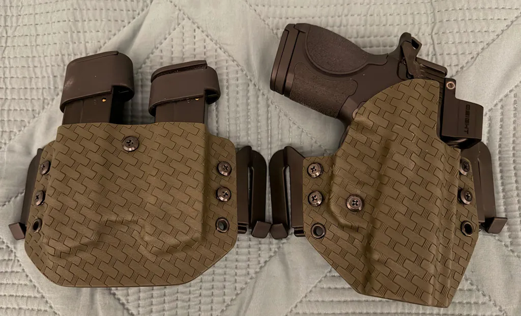 Overall I love all the Upper Hand products that I have purchased. The only reason that I knocked one star off of the rating for the two double mag holsters is because on both one of the magazines fits tighter than the other and if I ajust the tension on the looser of the two then the other is too tight. Still very happy with my purchases overall.