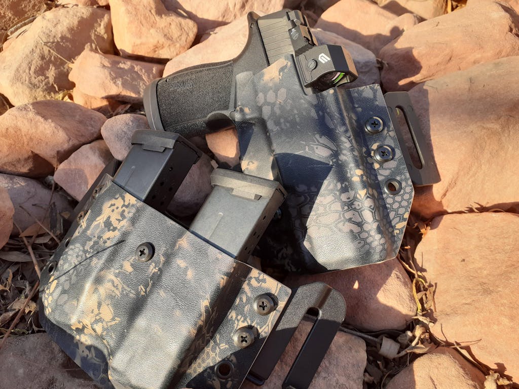 To be as sleek as possible, each holster is molded to your specific gun. Excess material is removed from the bottom of each holster to aid in concealment. Weighing in at only a few ounces, our holsters add very little overall weight to your setup.