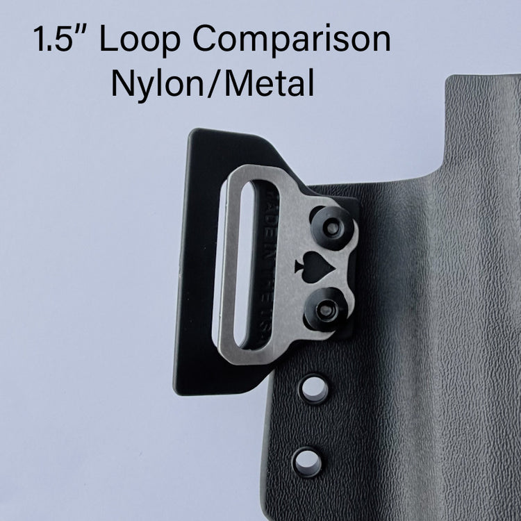 I ordered these because my 1.5” leather gun belts did not slide through the nylon loops very smoothly. I figured the tumbled metal might be smoother to the leather and allow it to slide easier - not so much; same as the nylon really. Benefit to these is they’re smaller and do seem to pull holster tighter. And I love being able to set up with a forward cant. I would buy again.